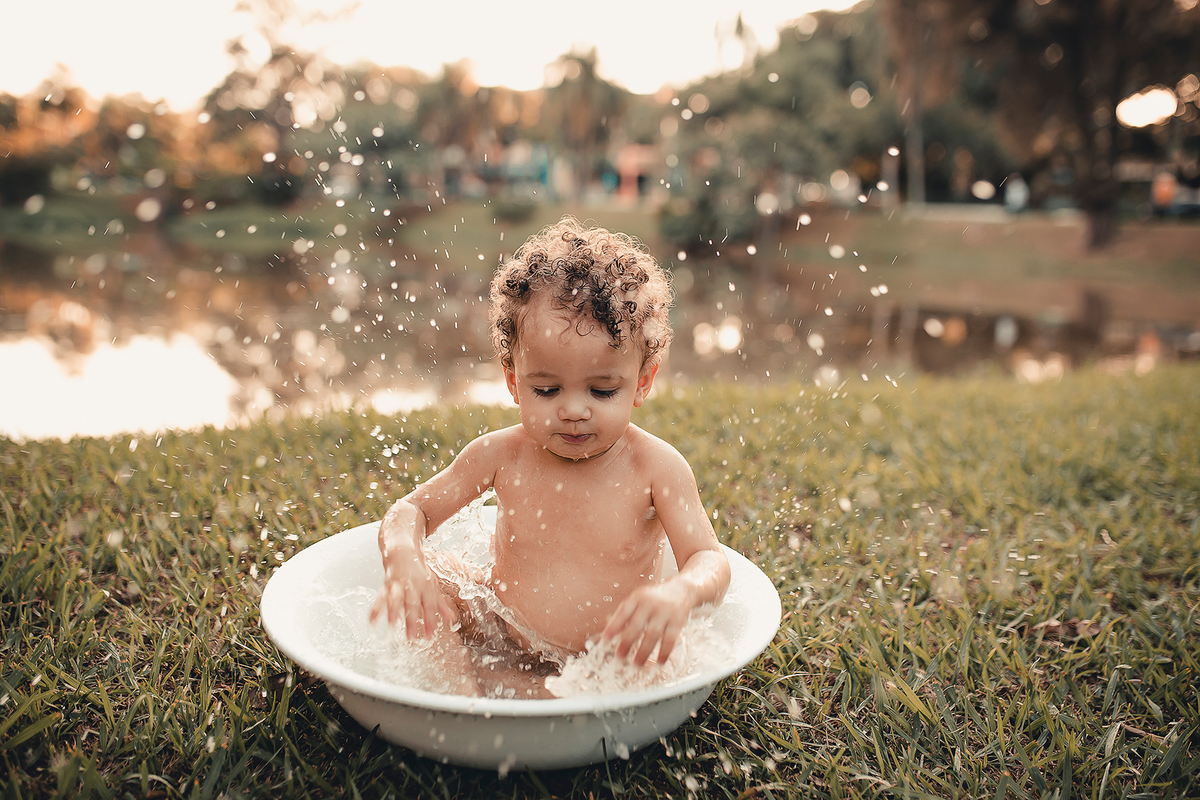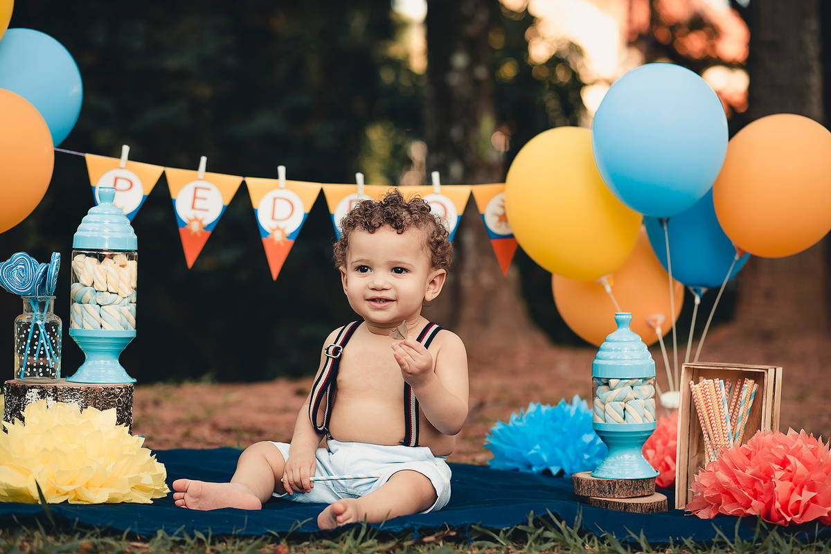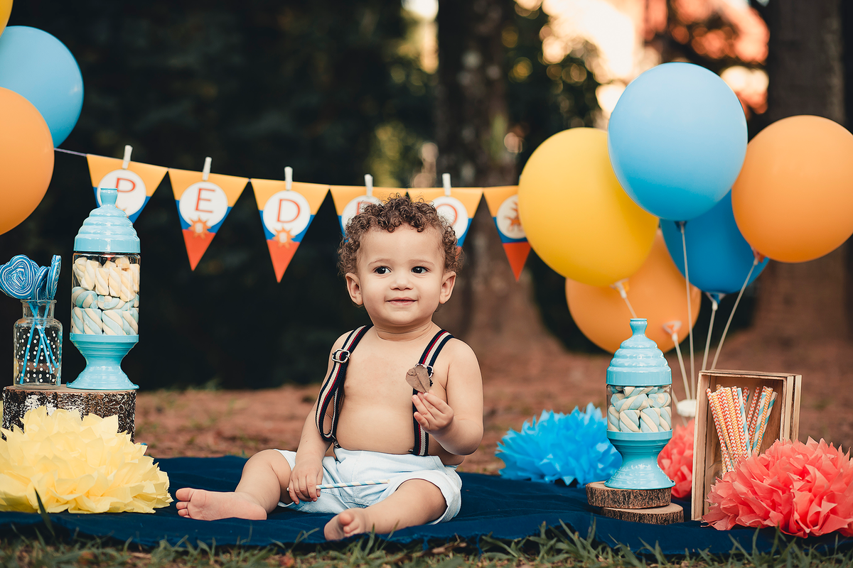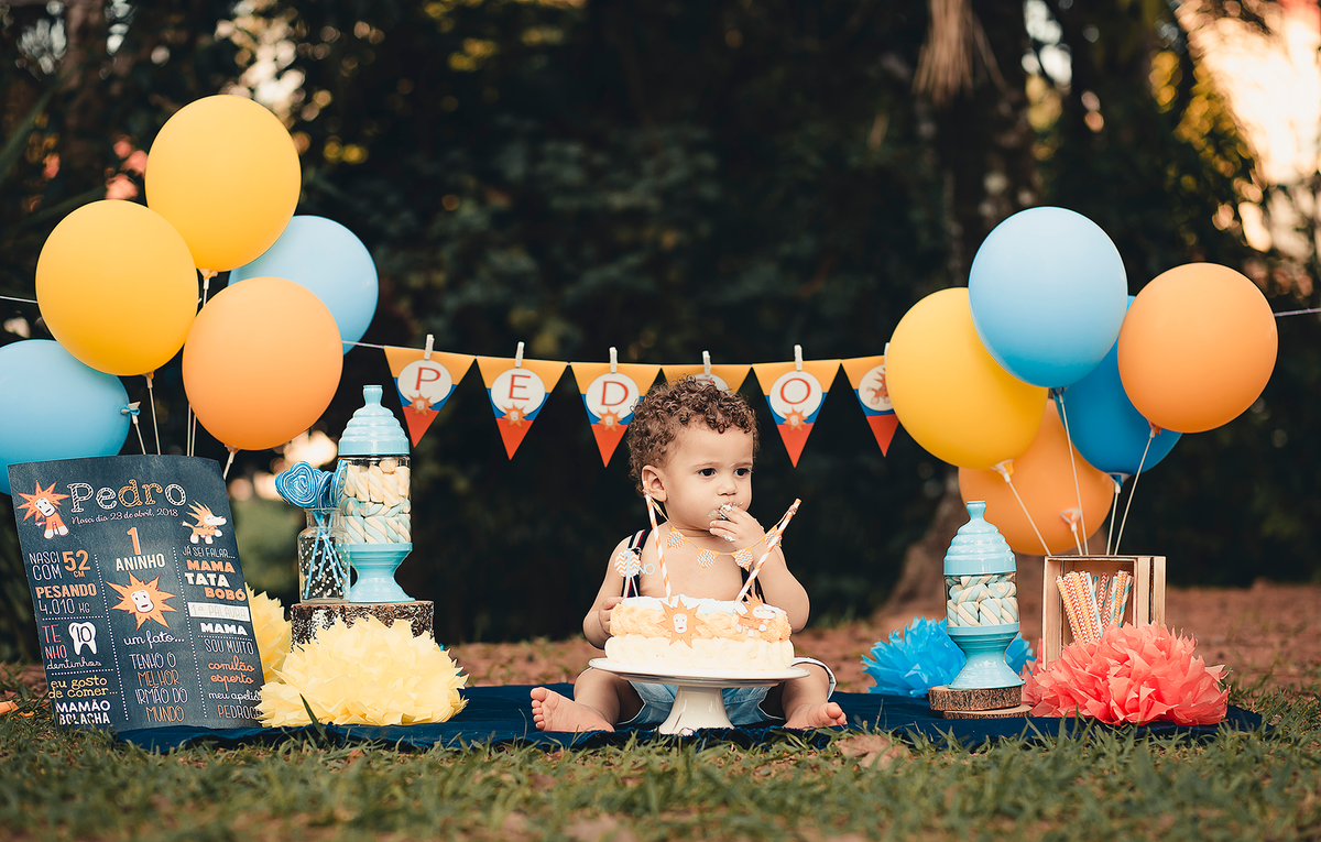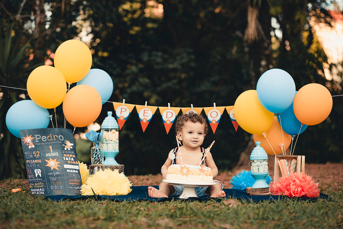 Um smash the cake com direito ao banho de bacia no final que ficou liiindo!!