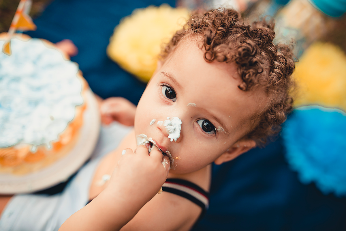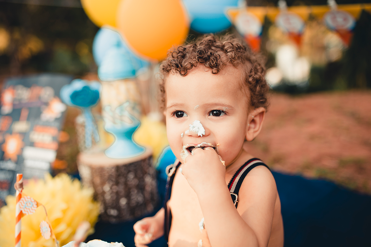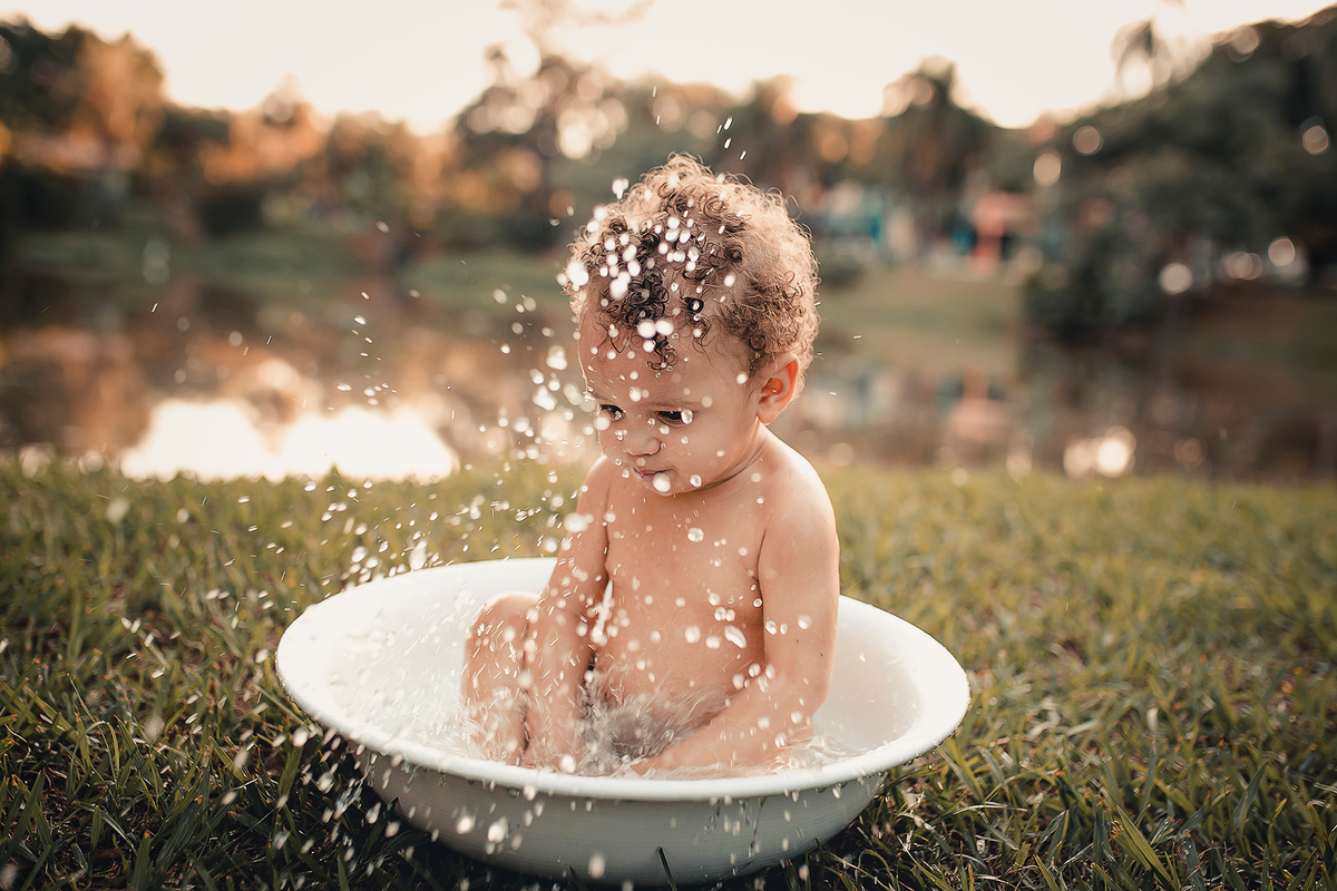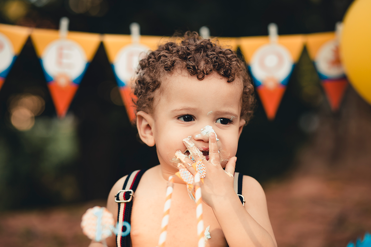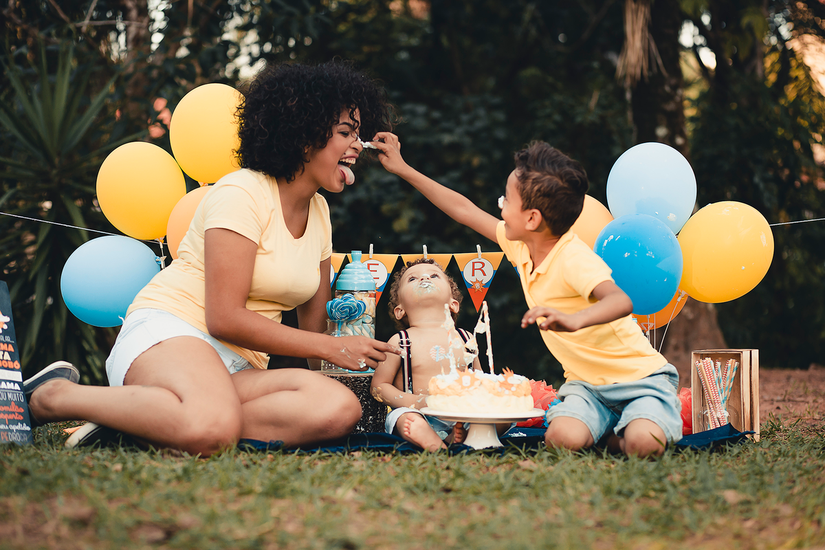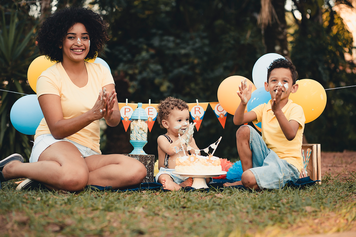 Um smash the cake com direito ao banho de bacia no final que ficou liiindo!!