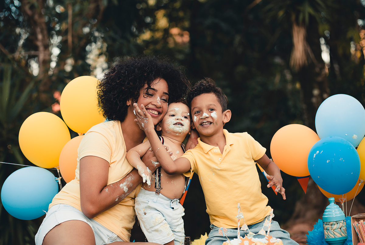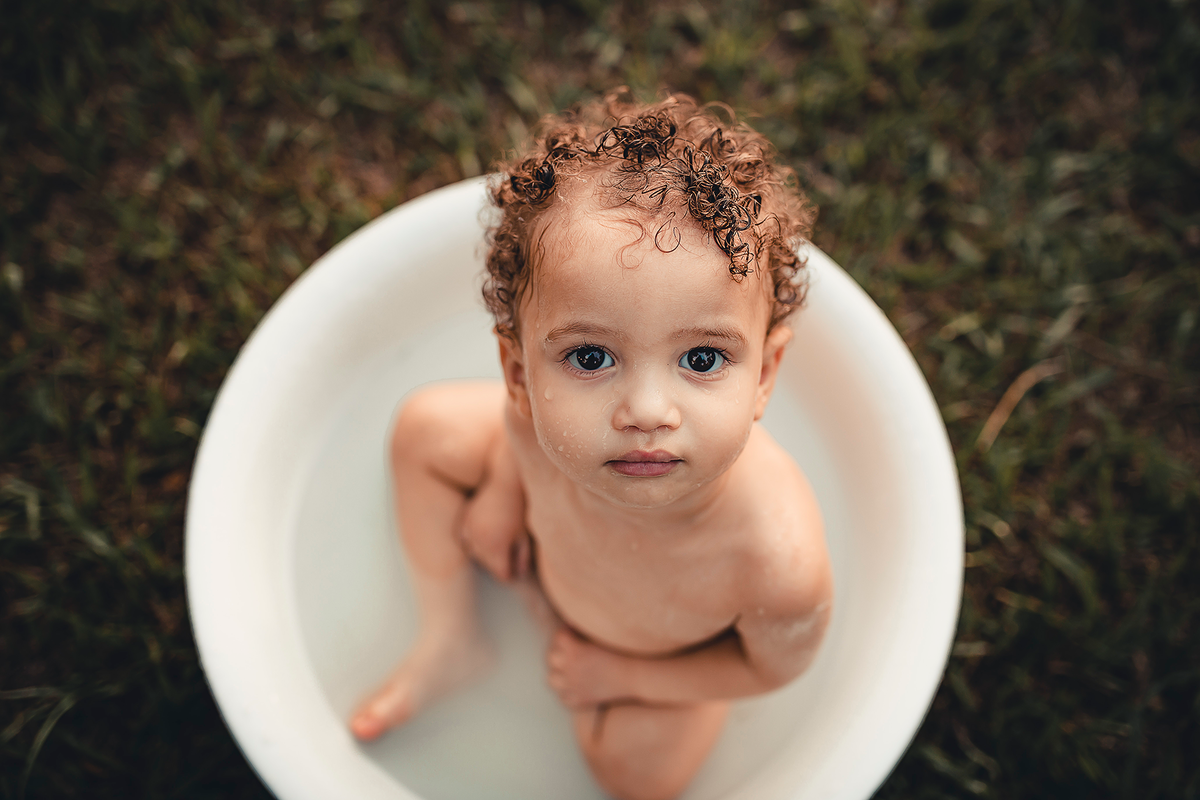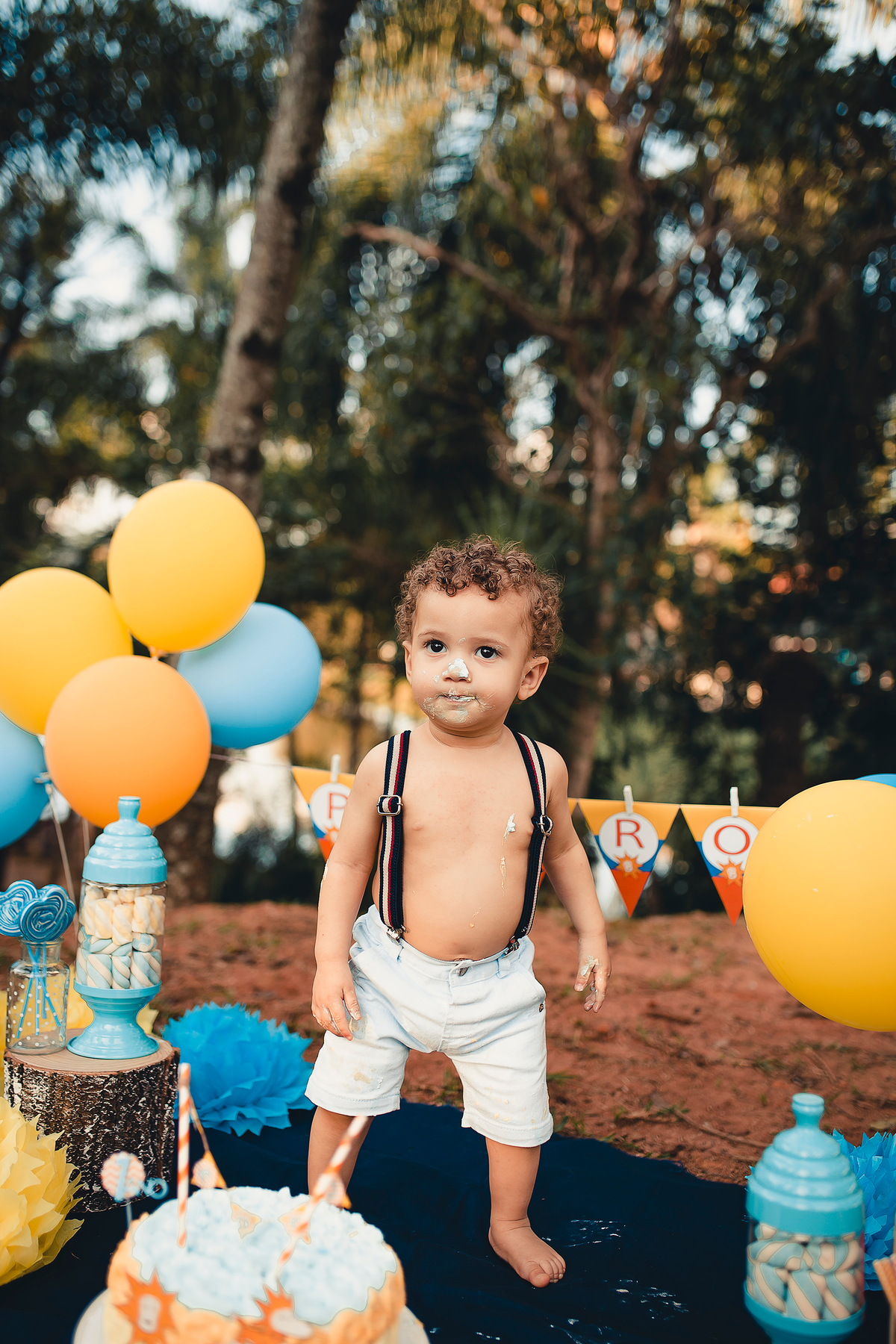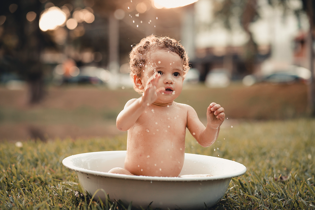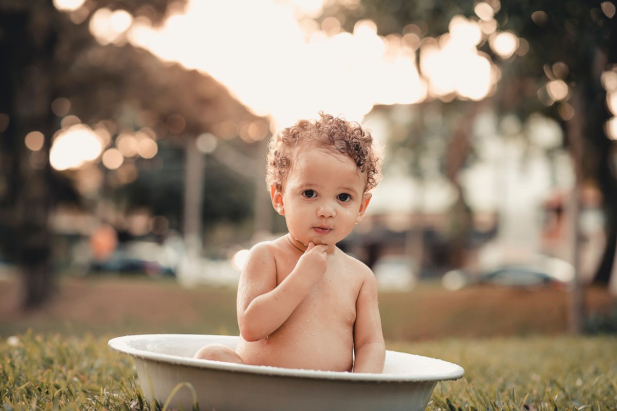 Um smash the cake com direito ao banho de bacia no final que ficou liiindo!!