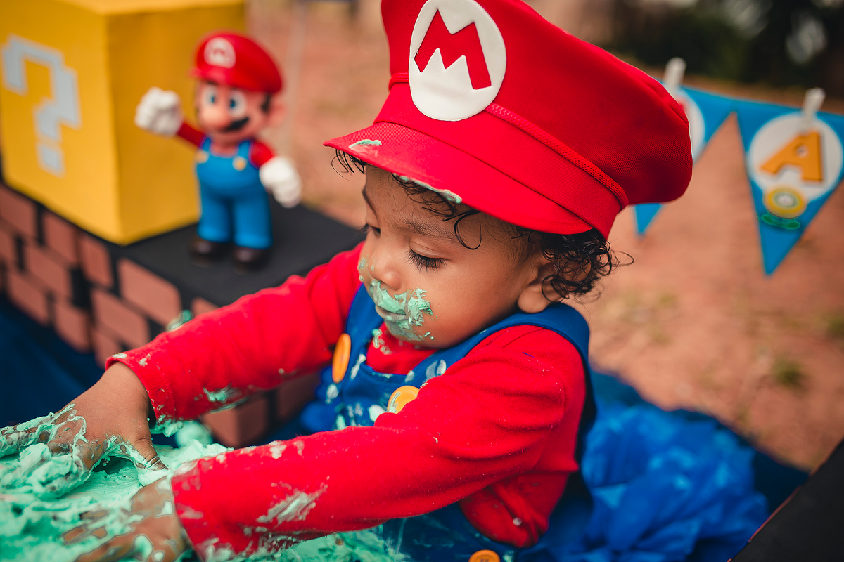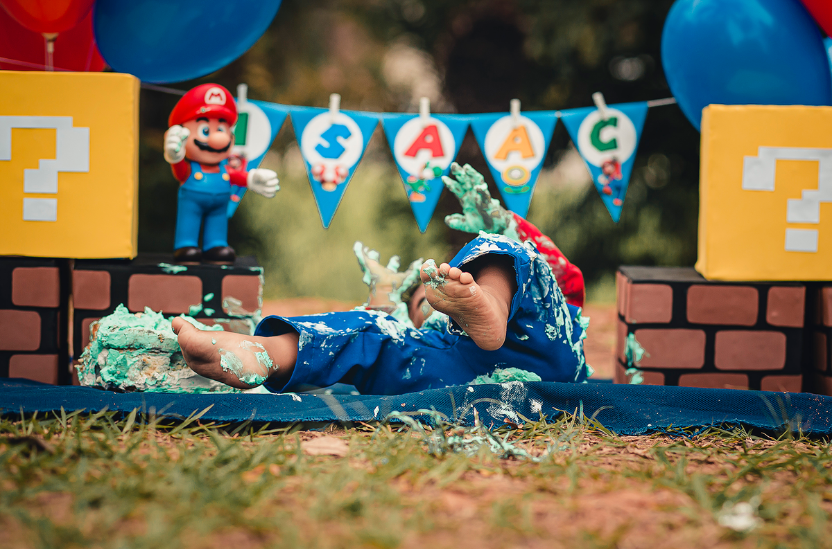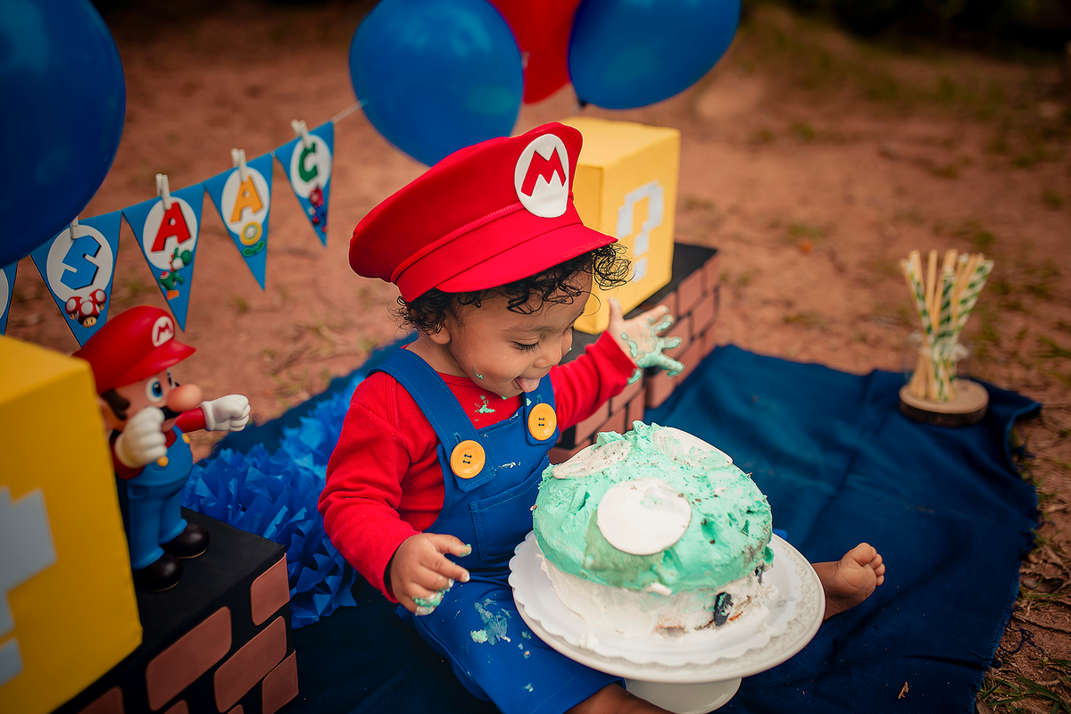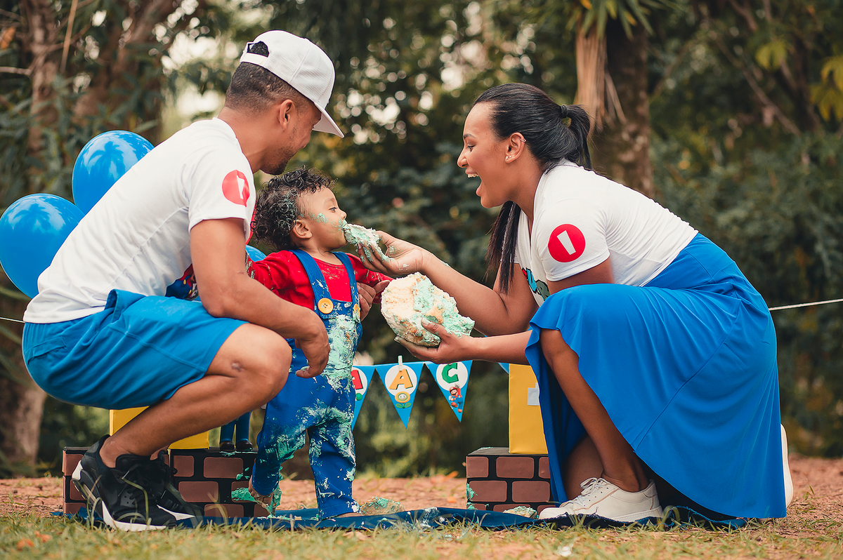 No ensaio de 09 meses ele já estava quase andando e não queria mais ficar sentado nos props, agora vocês podem imaginar no smash né? Hahaha Ele já esta andando, ta muito esperto e levou o smash the cake muuuito a serio rs a gente riu demais nesse dia, foi espetacular!