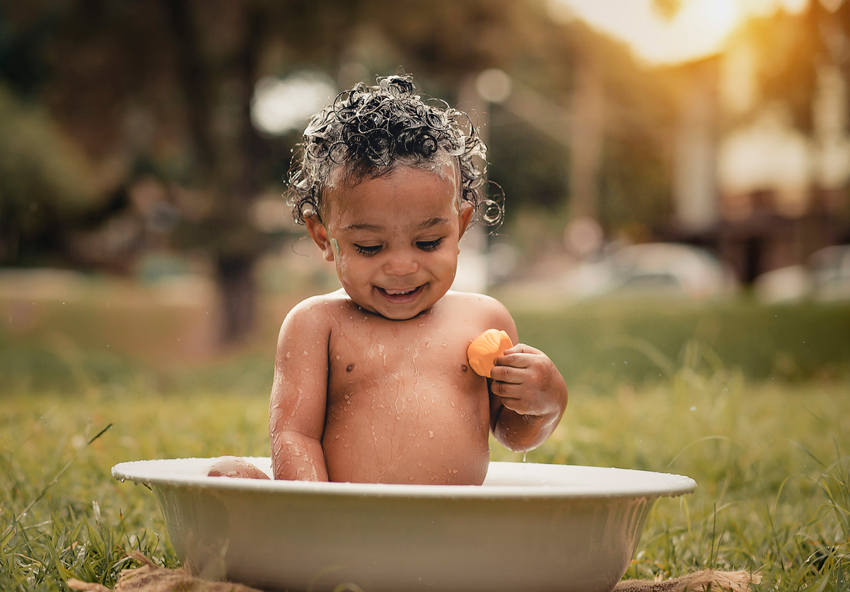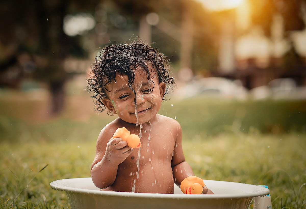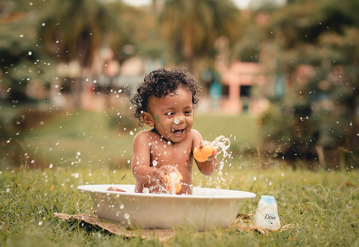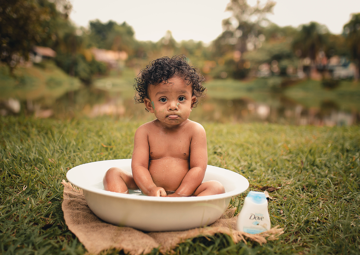 Finalizamos com o banho de bacia que foi só festa, toda criança ama.