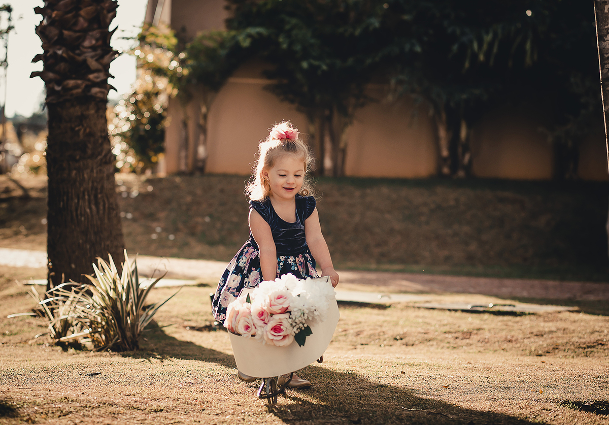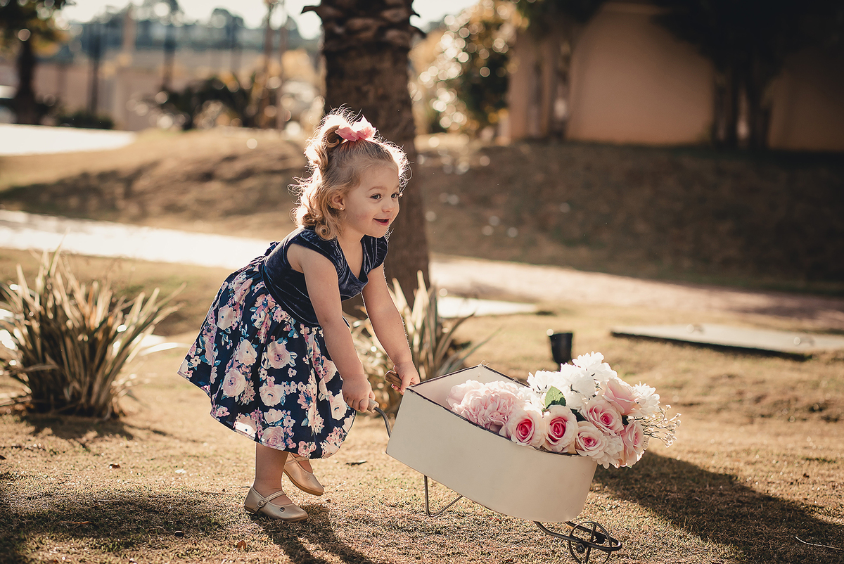 Perguntei pra mamãe antes se ela empurraria a carriola com flores e ela disse que com certeza sim, e olhem isso gente! Não dá! Hahahaha É muita fofura pra uma criança só.