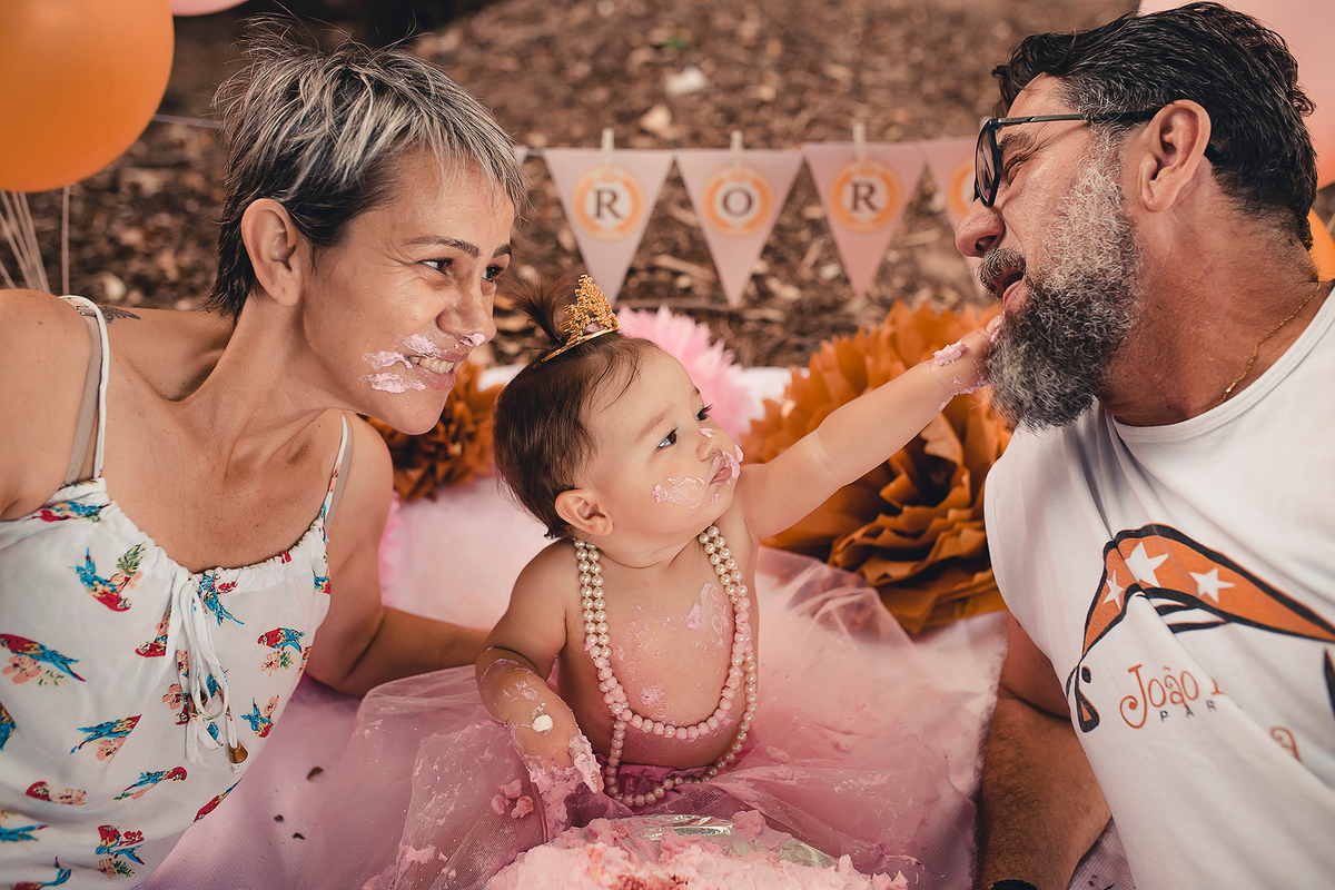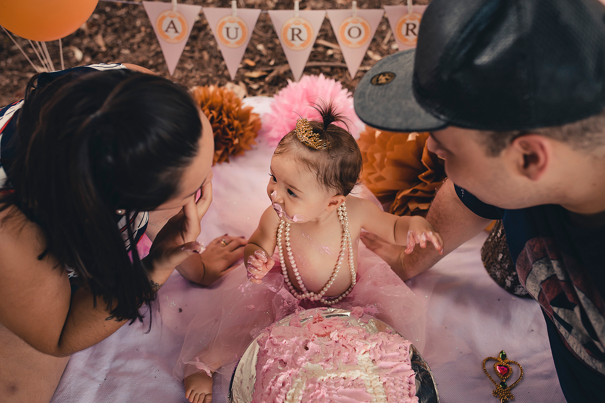 Além dos papais, o ensaio teve a participação de todos os avós e da titia, a Aurora curtiu muito o bolo e finalizamos com clean UP, que criança não gosta de água no calor não é mesmo? ♥